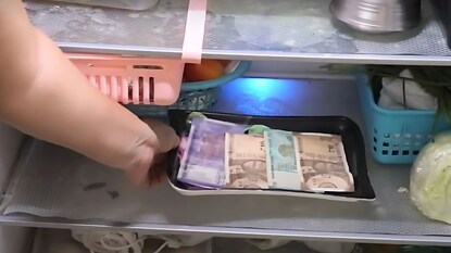 नवी दिल्ली : सामान्यपणे पैसे आपण खिसा, पाकीट, बॅग, कपाट, बँक अशा ठिकाणी ठेवतो. पण तुम्ही कधी फ्रिजमध्ये पैसे ठेवले आहेत का? फ्रिजममध्ये आपण फळं, भाजी किंवा इतर लवकर खराब होतात अशा वस्तू ठेवतो. फ्रिजमध्ये पैसे कसे काय ठेवू शकतो, असा प्रश्न तुम्हाला पडला असेल. या किचन जुगाडचा व्हिडीओ सोशल मीडियावर व्हायरल होतो आहे.