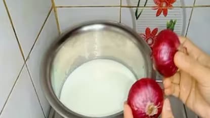 नवी दिल्ली : दूध आणि कांदा एकत्र... विचार करूनच तुम्हाला आश्चर्य वाटत असेल. तुम्ही पाहिलं असेल दुधाजवळ कांदा ठेवला तर दूध खराब होतं. त्यामुळे दुधासोबत कांदा कधीच ठेवत नाही. पण दूध आणि कांदा यांचा एकत्र वापर कराल तर त्याचा भन्नाट असा फायदा आहे. एका महिलेने हा जबरदस्त किचन जुगाड दाखवला आहे.