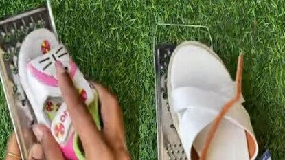 व्हिडीओत गृहिणीने दाखवल्यानुसार तिने वेगवेगळ्या चप्पल घेतल्या आहेत. चपलांचे तळवे ती हलक्या हातांनी हळूहळू किसणीवर घासत आहे. महिलेने सांगितल्यानुसार जुनी किंवा नवी कोणतीही चप्पल असो एकदा तरी ती अशा पद्धतीने किसणीवर घासा. किसणीवर चप्पल घासल्यानंतर त्याचे तळवे पाहा तर ते थोडे खडबडीत झालेले दिसतील.