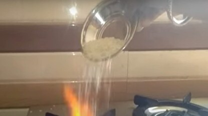 Kitchen Jugaad Video : चालू गॅसवर एकदा तांदूळ नक्की टाका; टळेल मोठा धोका