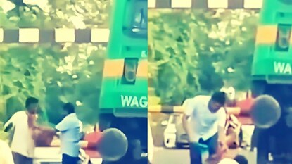 Loco pilot beat man on rail track : रेल्वे ट्रॅकवरून उठल्यानंतर ही व्यक्ती समोर थांबलेल्या गाड्यांकडे पाहून बोलताना दिसते. इतक्यात तिथं ट्रेन येते. ती ट्रेन तिथं थांबते. ट्रेनचा लोकोपायलट बाहेर येतो.