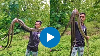 समोर आलेल्या व्हिडीओमध्ये तुम्ही पाहू शकता, एक माणूस आत्मविश्वासाने तीन मोठ्या कोब्राला धरुन उभा असलेला दिसत आहे. तो या मोठ्या कोब्रांना पकडून तो हातांची इकडे तिकडे हालचाल करत आहे. ते ही न घाबरता. त्याचा आत्मविशास पाहून तुम्हीही चाट पडाल. त्याच्या धाडसाला पाहून तो सर्प मित्र असल्यांचा अंदाज लावला जात आहे.