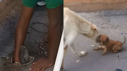 नवी दिल्ली : खड्ड्यात लहान मूल पडल्यानंतर त्याला वाचवण्यासाठी करण्यात आलेल्या प्रयत्नांच्या काही बातम्या तुम्हाला माहिती असतील. पण याच खड्ड्यात एखादं कुत्र्याचं पिल्लू पडलं तर... आणि हा खड्डाही इतका लहान की एक हातही त्यात नीट जात नसेल तर... अशाच खड्ड्यात पडलेल्या एका कुत्र्याच्या पिल्लाला वाचवण्यासाठी पोलिसांनी धडपड केली. त्यांनी त्याला सुखरूपरित्या बाहेरही काढलं.