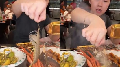 Shrimp attack on woman : वेदनेने महिला मोठ्याने ओरडताना दिसते. रेस्टॉरंटचा एक कर्मचारी तिच्या मदतीला धावून येतो. तो तिच्याह हातावरील झिंगा काढण्याचा बराच वेळ प्रयत्न करतो. पण...