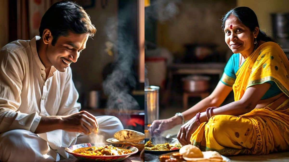 शांतता आणि एकाग्रता वाढते: जमिनीवर बसल्याने मन शांत होते आणि जेवणावर अधिक लक्ष केंद्रित होते.