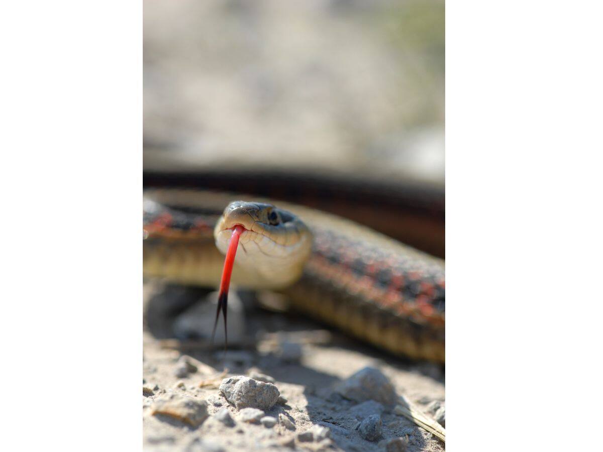 चे कण जिभेला चिकटतात आणि पुढे काय आहे ते सापाला कळते.